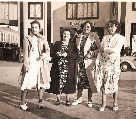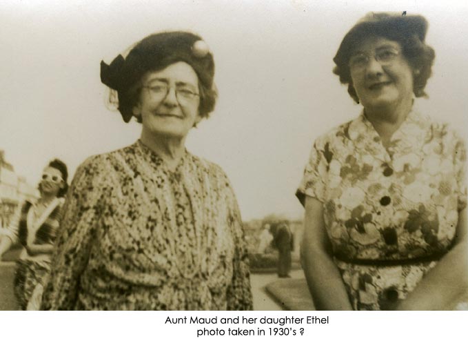 | Above should read Maud Marion with daughter Maud Hilda ,taken Folkestone 1951. | L. to R. Christine Lyons, Joan Lyons, Gertrude White?[probably: it is said she always looked older than Arthur], Arthur White/Frank Lyons??, John White. Bognor 1946? | Jessie Lyons 1923, Jessie Lyons 1883, Maud Marion White & Eva Lyons 1912 |