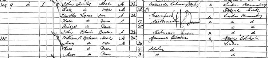 Jeremiah Lyons, 40, single, unlicensed cabdriver, in 1 room at 136 Long Lane, Southwark.