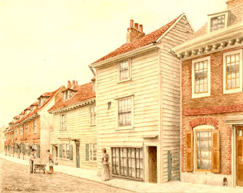 East Lane, which exists in a truncated form, ran from Neckinger to the River Thames at East Lane Stairs. As the style of houses suggests, it was an ancient thoroughfare and many of its properties date from before 1750. This view looks south along the west side of the street. Seemingly the same side of the street as The Peabody Building!