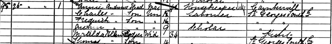1881 C.Annie Andrews, 42, b. Camberwell, was living with her three