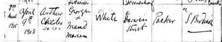 1905. Arthur Charles White born 7/3/1905, bapt. 9/4/1905 at St.Mary Magdelene, Southwark.. Now living at 2 Darwin Street. Husband George White descibed as Packer.