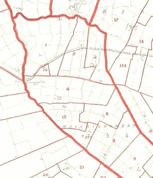 Tenement no 1, comprising house, offices and 33 acres of land, was transferred from Judith Moynihan to John Lyons in 1860/1861 so providing evidence that the John Lyons involved was the husband of Johanna Moynihan. Tenement no 14, having no buildings but comprising 1 acre of land, was transferred from John Connell to John Lyons also in 1860/1861. From 1873 the land valuation entries are linked together but there is no firm evidence to determine whether an elder John Lyons died around this time and the son took over all three properties.