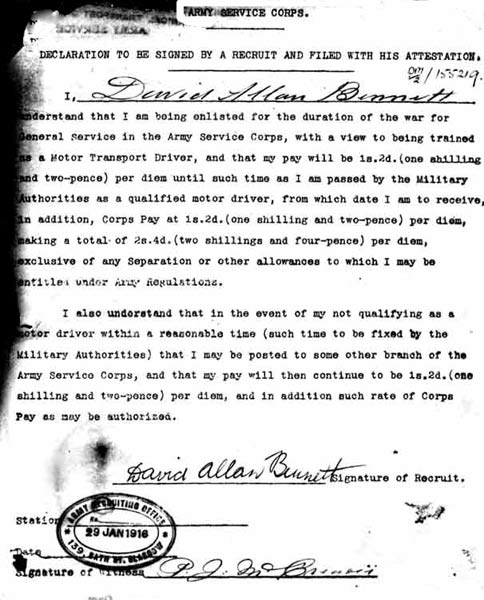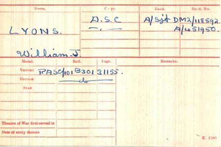 William J. Lyons' Medal Roll card. . . . . . . . . . . . . . Example of enlistment form he would have signed , in 1915.