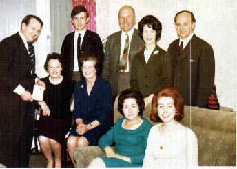 Christening of Gillian Lyons 1964. Standing, from left, Dennis ,John Lyons, Harold Ferrier, Joyce, Frank Lyons: seated Hilda, Joan Lyons, Eileen, Philippa