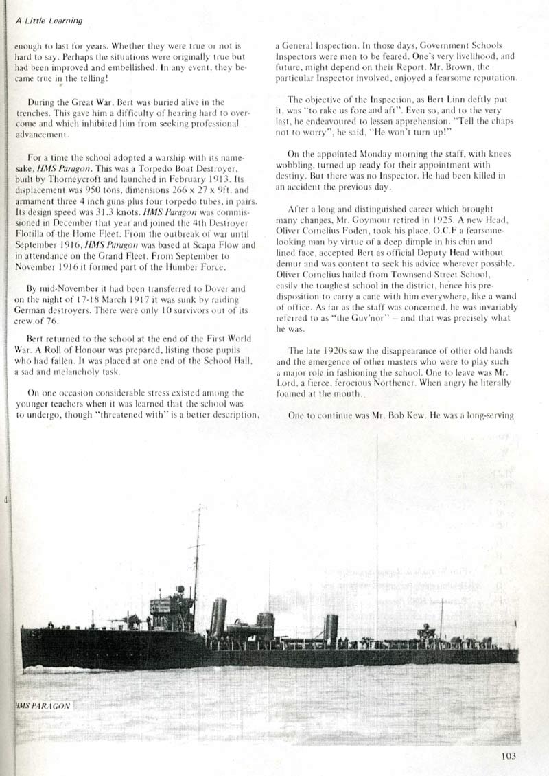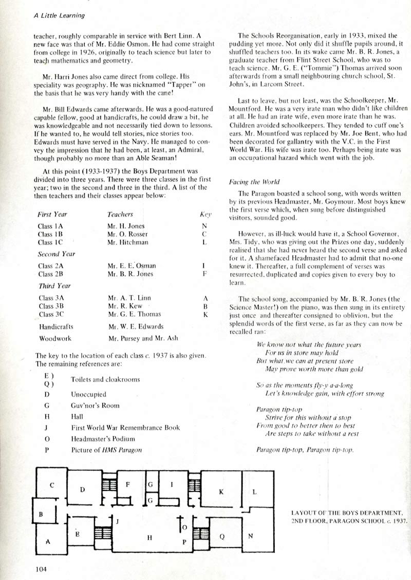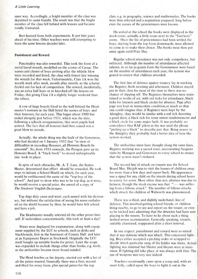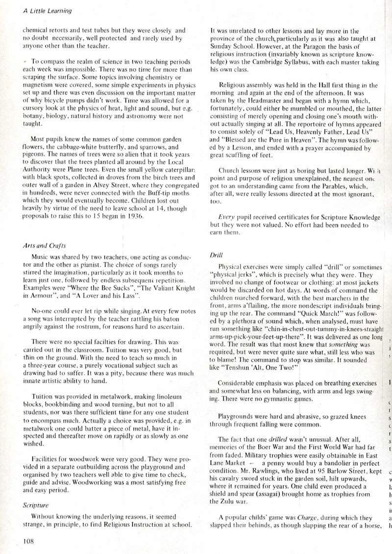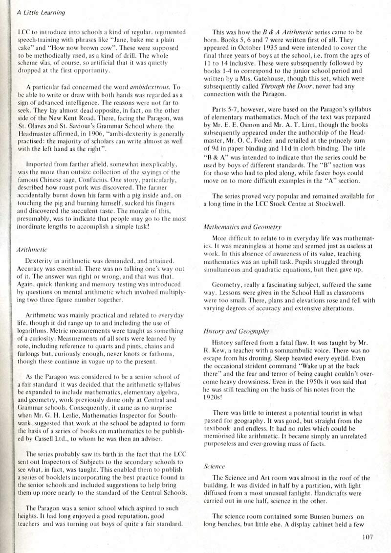 In 1872 Chief Inspectorate of Schools described Southwark as 'an educational desert: the people were degraded, the streets dirty and unswept, houses had little or no accomodation, refuse was thrown out of the windows into the streets and teachers were hooted and had refuse hurled at them' . Most real education was undertaken in Nat.Schools, but the clergy controlled both the religious and educational life of the country, founding schools wherever possible. By 1900, Southwark had 44 such schools. Often parents saw no relevance between the education a child received and real life. . .Prize giving had overtones of Trooping the Colour: held on Empire Day, May 24, it was renamed Commonwealth Day in 1936, pupils receiving a half day holiday. There were tests and exams half yearly, but also weekly marks, with names being moved up and down on a board accordingly.. Flint Street School had snow fights with the boys at the Church of the English Martyr, colloquially known as 'the ripe tomatoes'.[ So, Frank's father must have decided the teaching at the Paragon was superior to that of the school of the English Martyr.]. The Paragon opened 21/03/1900 ,with its head paid £26 per year: there was no hot water & no indoor sanitation. Mr Samuel Robert Goymour was its headmaster from 1900-1925, followed by Oliver Cornelius Foden [ so Frank would have known them both] .The Paragon's School song was: 'We know not what the future years For us may hold But what we can at present store May prove worth more than gold. So as the moments fly - a - long Let's knowledge gain, with effort strong. Paragon tip - top Strive for this without a stop From good to better then to best Are steps to take without a rest . Paragon tip - top, Paragon tip - top'. . . The school badge was a simple, gold 'P', worn on a 'pimple' [cap] or on the breast of a coat. The school enjoyed a good reputation, with good teachers and was turning out boys of a fair standard. . Two of its most popular hymns were 'Lead us heavenly Father lead us' & 'Blessed are the pure in heaven'. School milk existed in third of a pint bottles - probably had to be paid for.