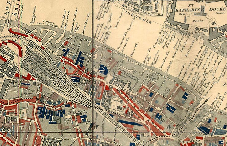 1850. After the outbreak of cholera the streams which surrounded Jacob's Island were built over..