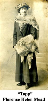 1908. In October, 7 months after the death of her father, Topp sent a postcard of herself below to her aunt, Ellen, wife of Charles Robinson, her mother's brother. This gives her address[ where she must have been employed] as The Solent Cottage, Fawley, Southampton, but also mentions Pont Street[ which must have been the London address of her employers] . Here Topp is aged 20..