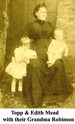 The first photo must have been taken c.1891. Grandma Robinson must be Elizabeth Annie Rousell/Robinson,1838-1903, who would then have been 53, husband Francis Robinson 1834-1890 having just died. Re the photo with the dog - Nancy is sure this is not Topp: so, who? - someone on my mother's side, photo did not come from JK nor from Hazel