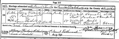 1901. Henry Parchment a warehouseman in July when his son Arthur Walter Parchment aged 24,marries. 74 Viaduct Street.