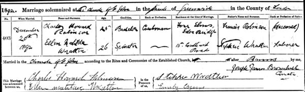 1929. His wife Ellen M Robinson died Sep 1929 Lewisham