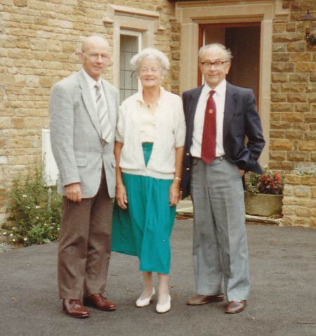 Arthur Law with his first cousin, Joan [Turner] and her husband Frank Lyons. . . .Marian Law with the Lyons at Boughton Northampton c 1991.