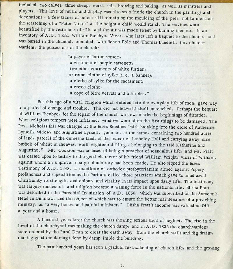 With acknowledgements: Lindsell: a record of its people, parish and church by Arthur Frederick Osborne (1944). A copy can be found in Saffron Walden Town Library ref E/LIN.942.