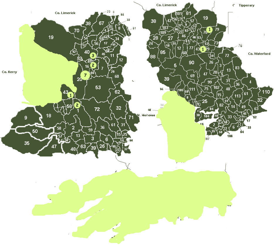 The Lyons given are mainly around Kanturk, with the "Kerry Dioceses" finger information missing
