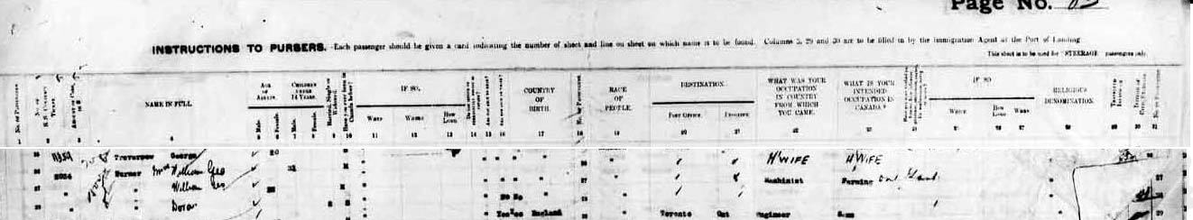 (30), Mrs. F. Turner (29) and Dorothy (2) while on the Canadian passenger list