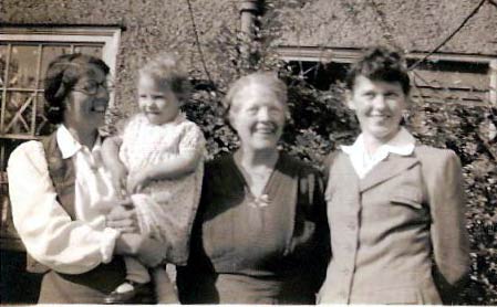 "In 1924 I was born and she was very ill as I was a ceasarian birth which was uncommon at that time 1924 she remained in hospital for quite awhile and I was cared for by one of my dads aunts.After this my parents were told my mother should not have any more children so I ended up an only child. My mother had 2 babies before me but both died at birth very sad because in those days they never got to even hold their babies to say goodbye something my dear Mum was very sad about for many years. After this she had a fairly quiet life bringing me up and spoiling me lots because she said I was all she had and at times I felt she couldnt let me out of her sight but the war put a stopto that. She didnt have a very exciting life between the years you mention just a loving homemaker & housewife & a lovely lovely Mum. She loved to visit her sisters which we did as often as we could: they didn't live thar far away in those days." - from Alice, 2011.