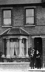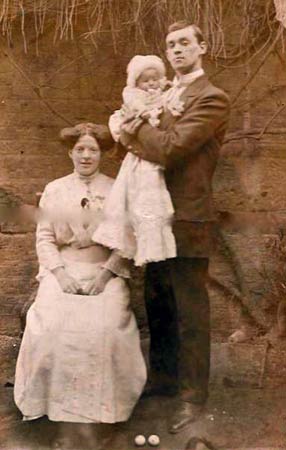 8 Lewis Street ; Lucy & Jim lived in 1912 & Lucy during the early days of the WW1-Lucy on left. c1928 | . ..Lucy Fedden, husband Jim Parker, daughter Alice (Queenie), 1924. |