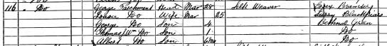 1861C George Parchment , aged 8, living Pleasant Place, Bethnal Green, with his parents and 2 younger siblings Another sister, Louisa was born 1855 but died in 1857 in Bethnal Green..