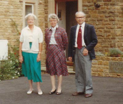 Arthur Law with his first cousin, Joan [Turner] and her husband Frank Lyons. . . .Marian Law with the Lyons at Boughton Northampton c 1991.
