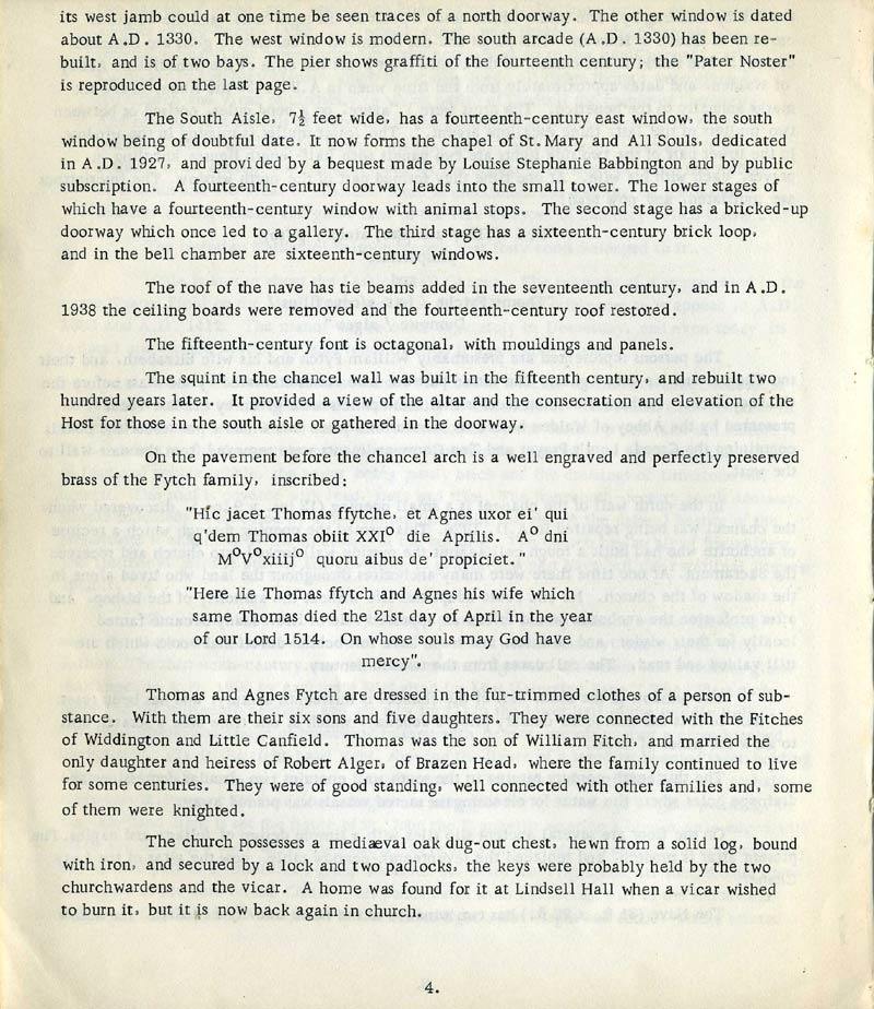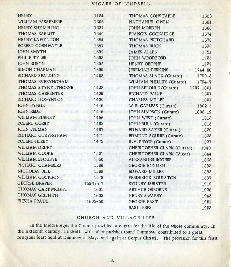 With acknowledgements: Lindsell: a record of its people, parish and church by Arthur Frederick Osborne (1944). A copy can be found in Saffron Walden Town Library ref E/LIN.942.
